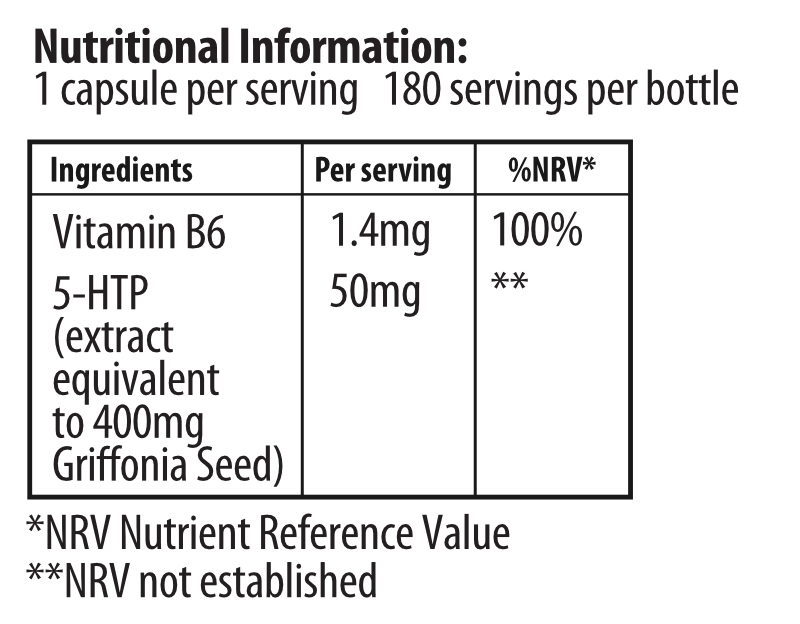 Each vegan tablet contains 50mg of 5-HTP, a concentrated extract equivalent to 400mg Griffonia Seed, making it a balanced and high strength dose. Each bottle provides a 2-3 month supply.